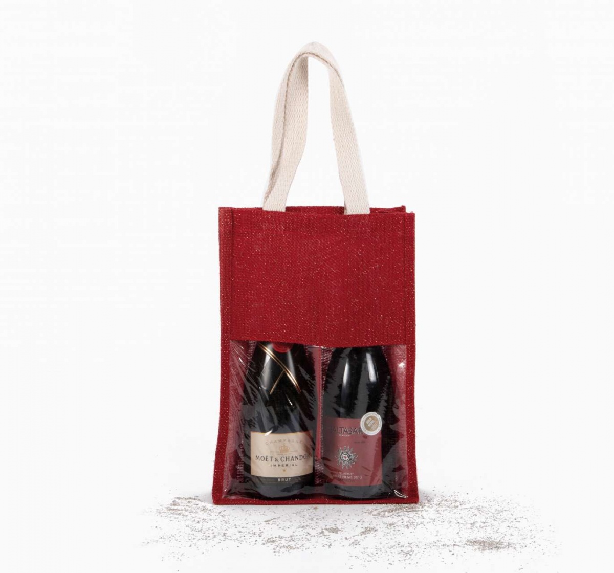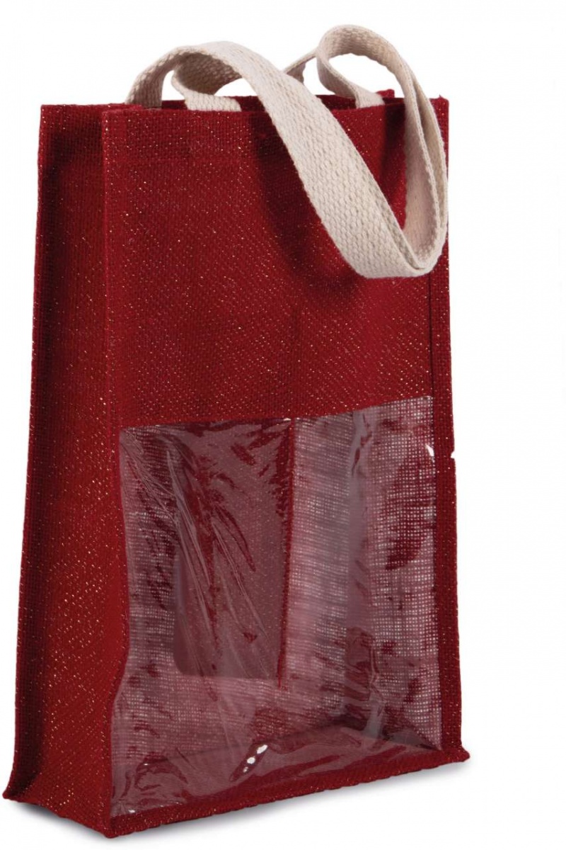- Jutavászon palacktartó táska 2 füllel és az elején átlátszó ablakkal