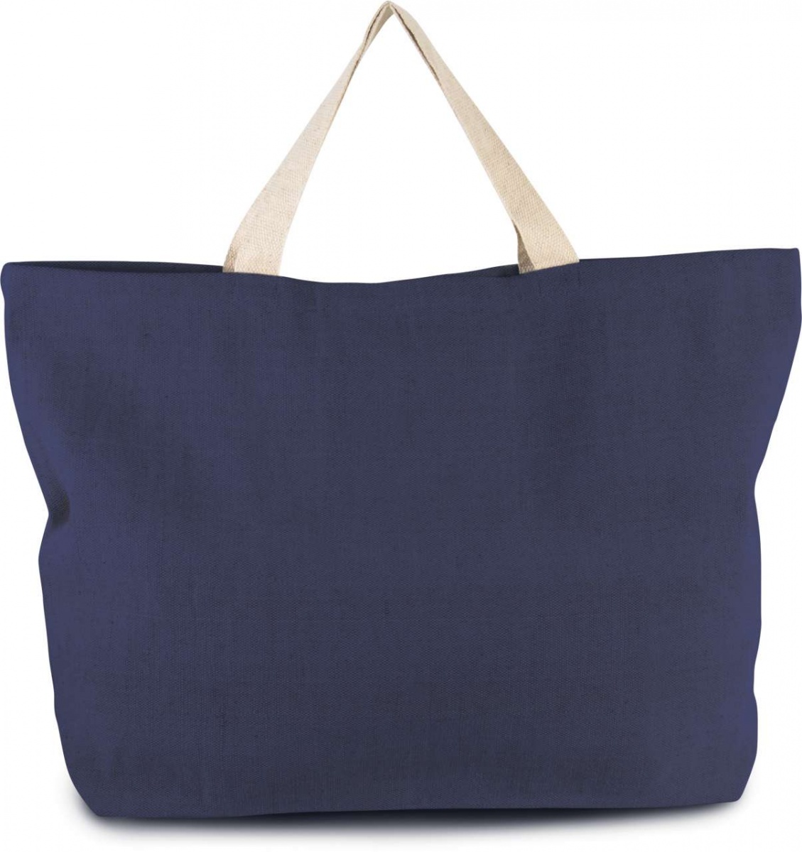 - Nagy mindenes táska jutavászonból és pamutból (juco) oldalrésszel és 55 cm-es, kontrasztos színű fülekkel